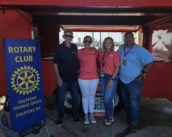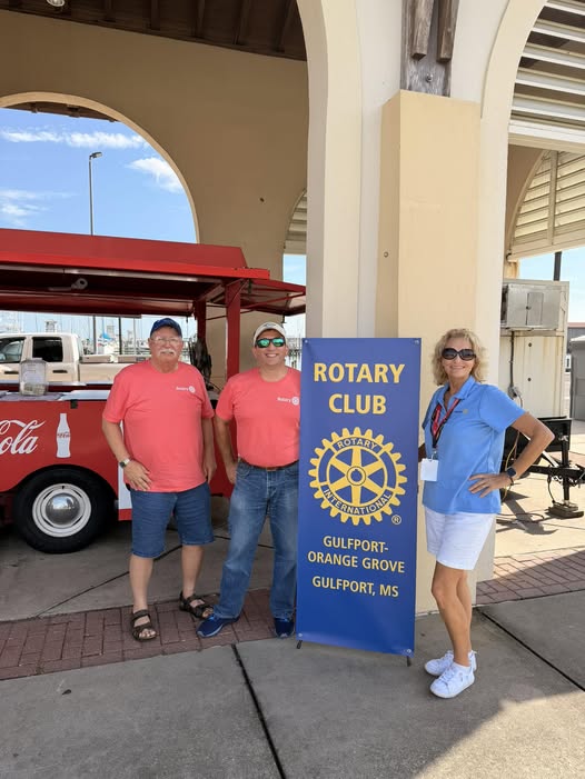 The Rotary Club of Gulfport Orange Grove is out at Cruisin’ the Coast this week, raising funds to support our many community service projects — including Backpack Buddies, Comfort Closets, High School Scholarships, and our Christmas for Kids program.