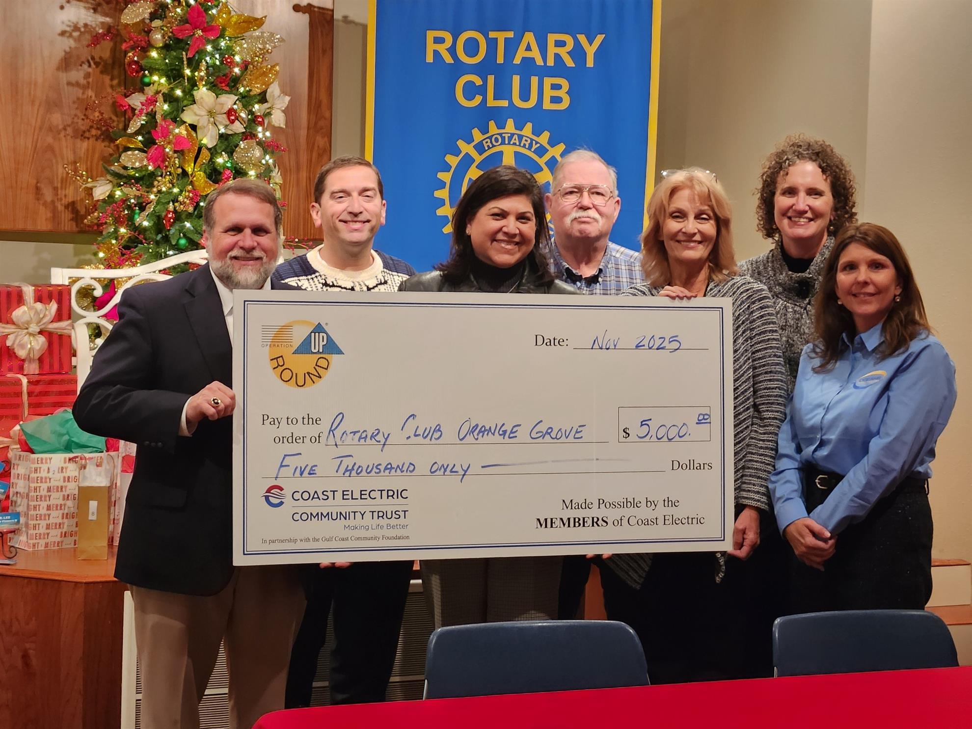 Santa (Janell Mallini Nolan) from Coast Electric delivered a huge Christmas present to the Rotary Club of Gulfport-Orange Grove at tonight's Annual Christmas Party in the form of a $5000 grant check from the Coast Electric Power Association Operation Round Up! Thank you so much for helping to fund our Backpack Buddy Program in the Harrison County School District MS!