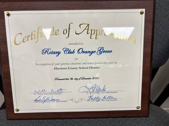 The Rotary Club of Gulfport-Orange Grove was honored today at a special community partner recognition ceremony at the Harrison County School District Central Office for our extraordinary service projects serving over 12 different schools in the Harrison County School District MS ! Thank you HCSD for this amazing honor!!!! We love to serve our schools!!